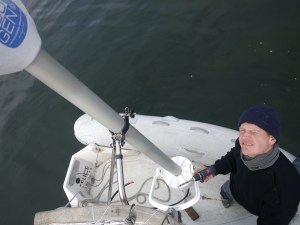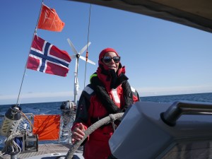 Jo har montert opp DuoGen (et vann- og vindkraftverk), så nå er vi selvforsynte med strøm om bord, ihvertfall på de lange teappene.