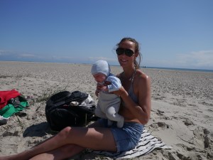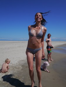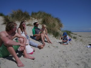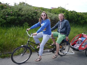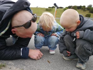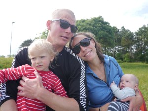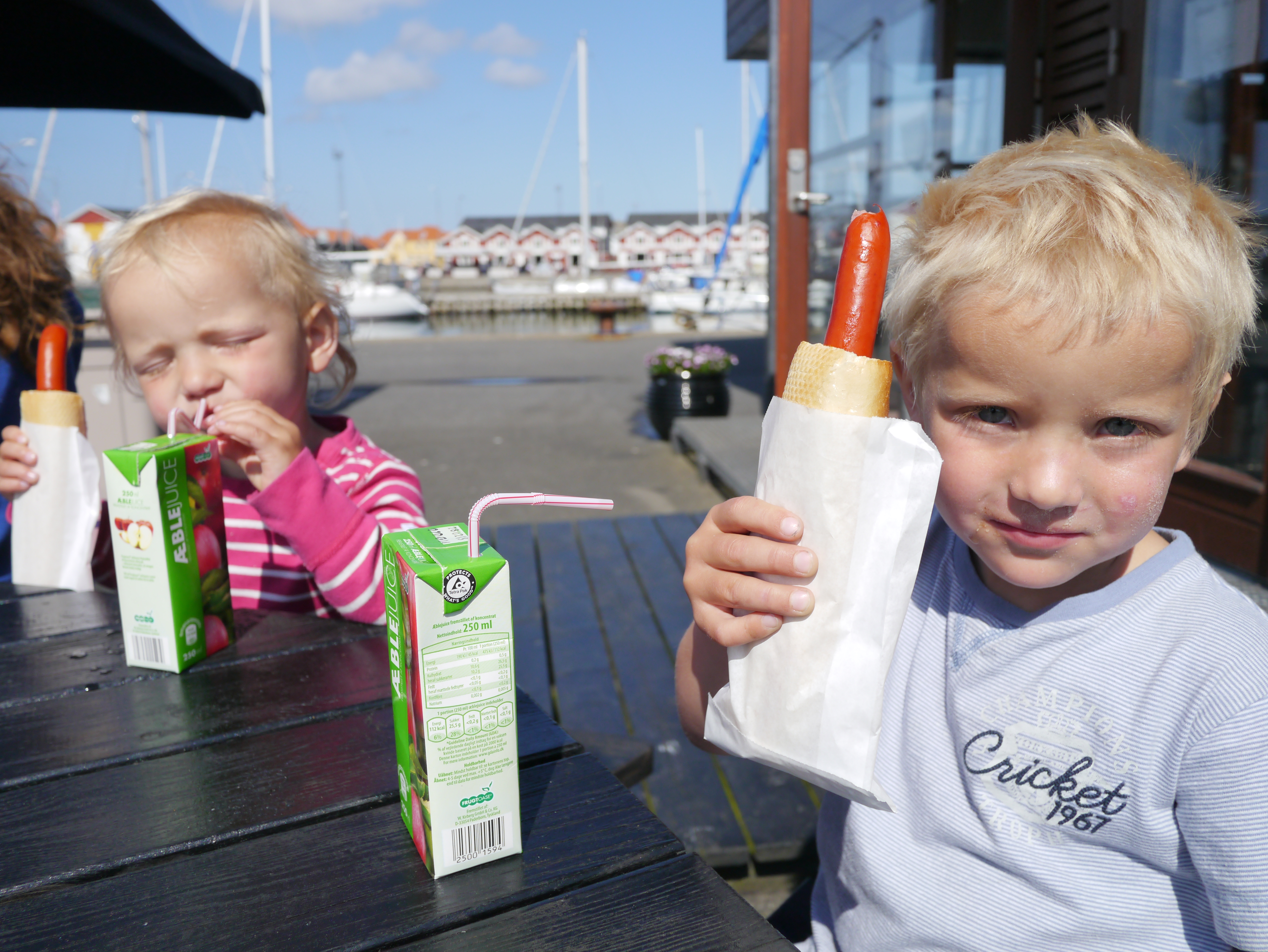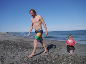 Vi har fått oppleve skikkelig dansk idyll de dagene vi har vært i Skagen (fortsatt med Tessa, Torra og Indie om bord)! Vi startet første dagen med en velfortjent lunsj i bakhagen på Brøndums, med sildetallerken og snaps i sommersol. Hos sykkelutleieren fikk vi tandemsykler, så det ble sykkeltur til Grenen med småjentene i sykkelvogn, Mikkel i bæresjal og Birk på egen sykkel. Der ble det deilig lunsj og sløv dag i solen med oppfriskende (!) bad før vi syklet hjemover igjen. Birk og Jo har fått kjørt seg i skateparken, både med sparkesykkel og skate board (mens Indie og Billie stort sett kranglet om sparkesykkelen til Billie…). Og vi har hatt fine turer til stranden med korte men digge bad. Det er nok ikke mer enn 15-16 grader i vannet, men det er billigere enn dusjene på brygga!