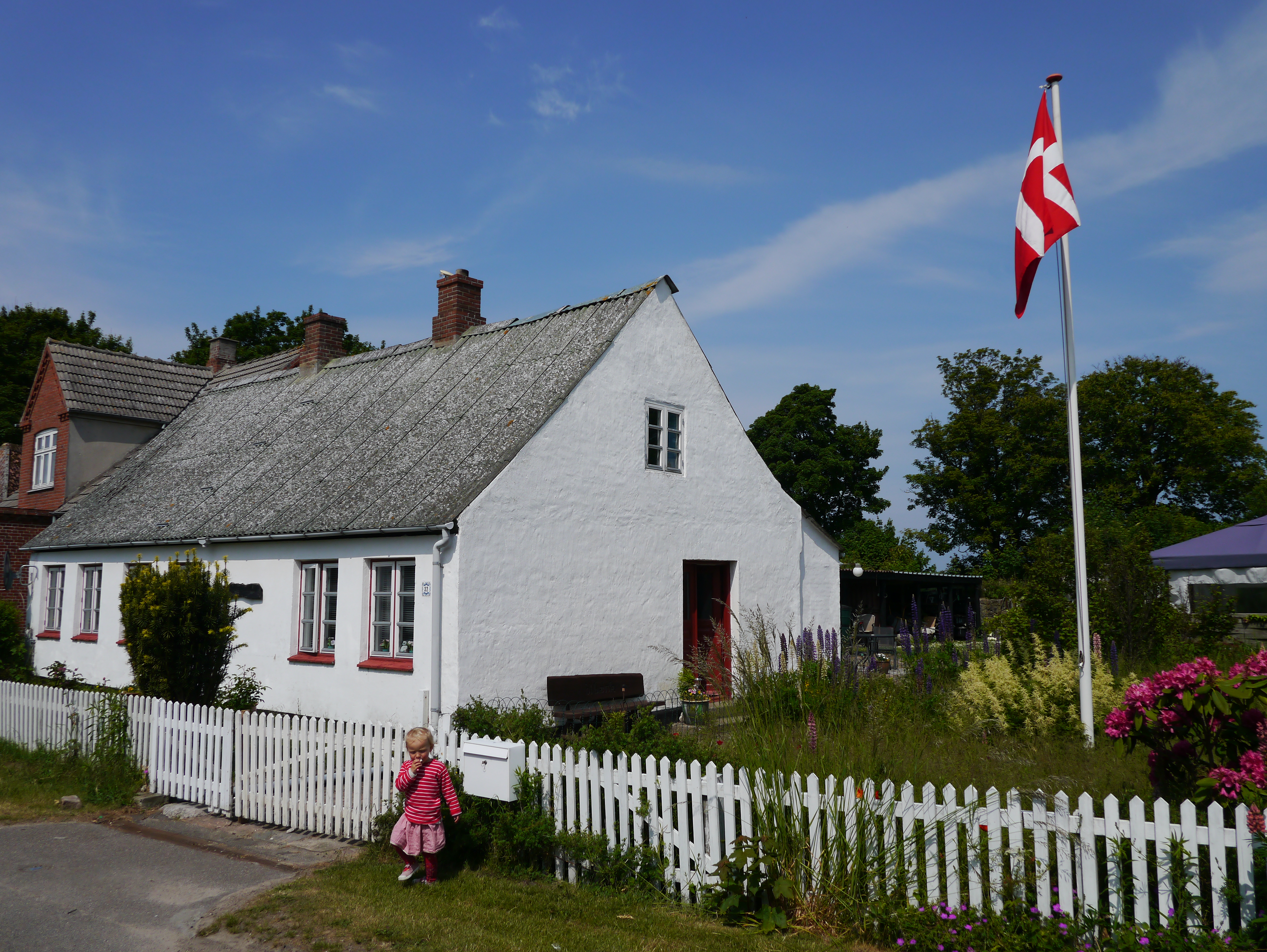 Øya har hvite lange strender, og sand, stein og siv går litt lenger opp over til å bli frodige jorder og store gamle trær. Innover på øya ligger små sjarmerende hus langs den ene hovedveien, og vi har allerede drømt oss bort i en tilværelse her (litt lenger enn noen dager på besøk med båt). For å toppe det vaier danske flagg fra blomsterfylte hager med drivhus og hyggelige folk som hilser. Også er det kombo kirke og fyrtårn – litt artig!