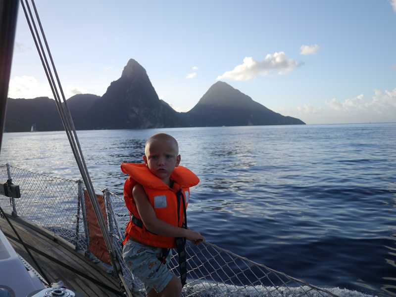 Etter en rimelig rullete nattseilas fra Martinique, kommer vi inn til Suffrear på St. Lucia i fantastisk morgenlys og krystallklart vann. Byen holder på å våkne til liv og en gris tusler nede ved vannet på den sjabby siden av stranden. Noen fyrer opp et bål med plast som brensel (j… streit!) og røyken fra det trekker rett inn i en klesvask som henger utenfor nabohuset. Tett regnskog ligger som et teppe fra oppi fjellet og helt ned til byen og sjøen. Og her ligger vi i bukta der Supermann så legendarisk (ifølge brosjyren vi plukker opp) fløy mellom The Pitons, to kjente fjelltopper her på øya.