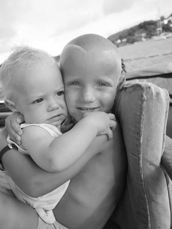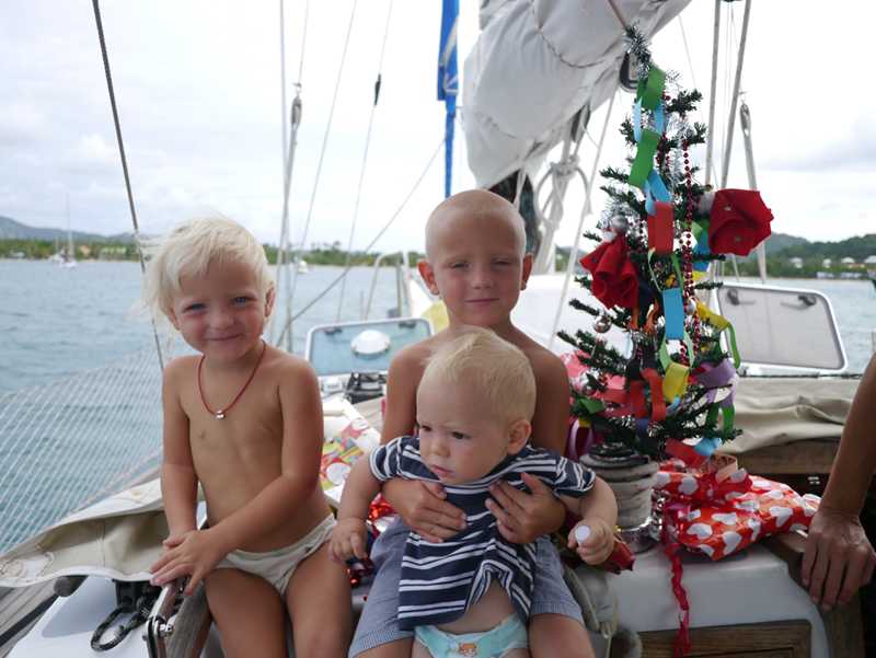 Vi regner med rundt 16 dager over, det vil si at vi akkurat skal rekke julefeiring med Eriks familie, Ellen og Jon (2 år), som venter på Martinique. Vi er selvfølgelig allerede i full gang med juleforberedelsene, og både adventskalender og adventsstake er på plass i Felice. Og i går hadde vi Mikkel, Billie og Birk på bommen iført nisseluer for foto session til julekort.