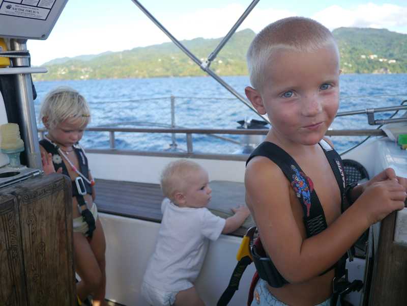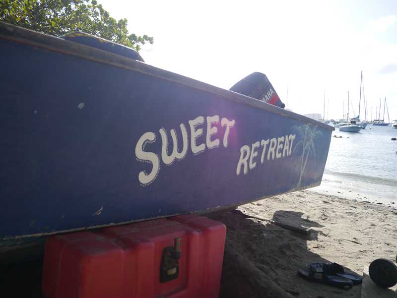 Her i Carib møter vi noe som er nytt for oss – boat boys! Det er unge menn i hjemmebygde og selvmalte trebåter, med gamle og skikkelig svære påhengere (det er de klassiske 80- og 90-talls Yamaha påhengerne som gjelder)! Mye clutchdog og annet moro som kan gå i stykker. Fant og en Yamaha gravhaug bak søpla i Clifton, Perry, her skulle du ha vært!