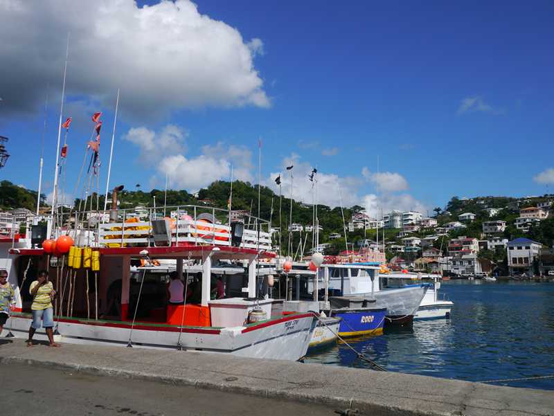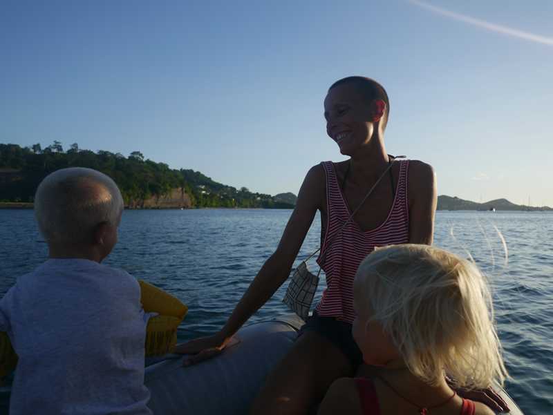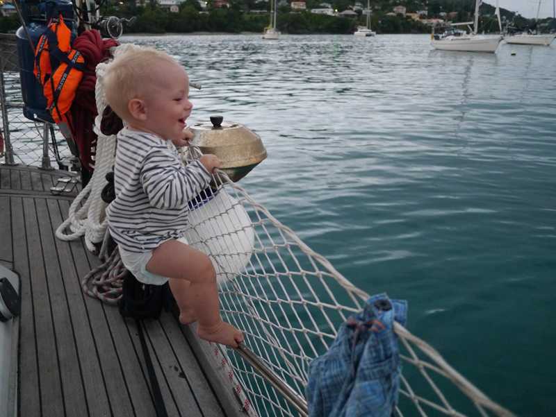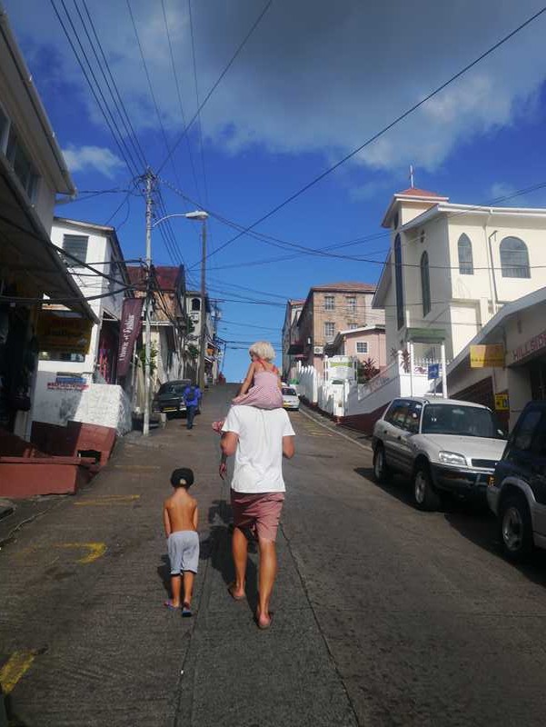 Fra en øde øy kommer vi til Grenada, som blir vår siste av de øst-karibiske øyene. Vi seiler så langt inn vi kommer, og det er laaangt inn i havna, vi føler nesten vi ligger for anker INNI byen! Her er det null vind, blikkstille og helt sinnsykt varmt. Legger oss rett bak Supermolli, litt oppå en moringsbøye som ser ut som den ikke er i bruk. Ettersom det ikke er noe vind, ligger alle båtene og snurrer rundt, og på et tidspukt trodde jeg at jeg rett og slett kunne gå om bord i Supermolli. Da er det ut med fenderne… Senere på kvelden får vi beskjed fra en hyggelig lokal kis om at vi ligger på et område kun for locals og at vi må flytte oss. Dagen etter legger vi oss derfor på utsiden, der går det faktisk an å puste (og bade!).