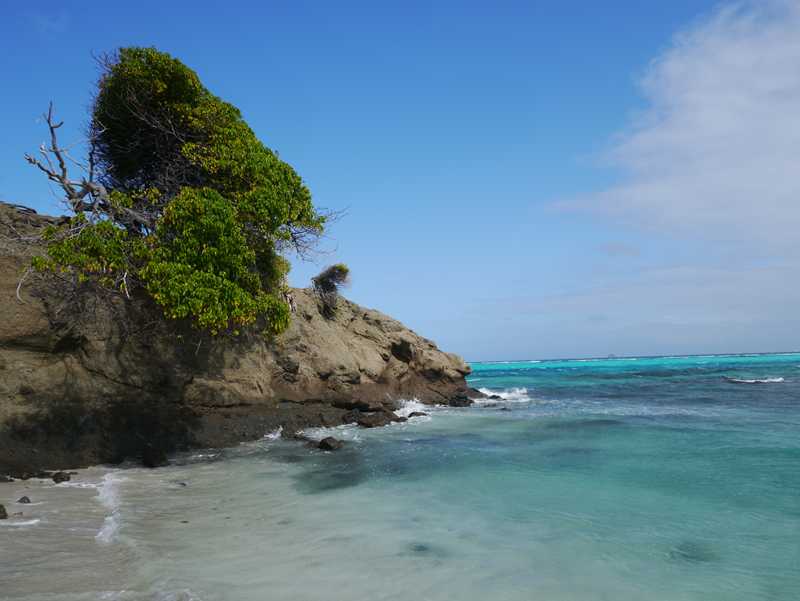 Her svømmer det store havskilpadder forbi båten! Det ser egentlig ikke ut som de svømmer skikkelig, men at de ligger og surrer i vannet helt uten mål og mening…! Også er det store øgler på øyene her som går uforstyrret rundt omkring, uten å bry seg om de hundretalls amerikanske turistene som slippes av charter-katamaraner og tråkker rundt her med svømmeføtter…