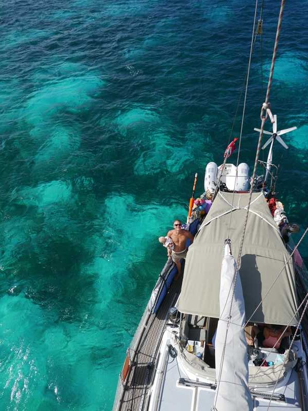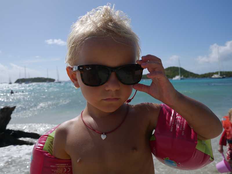 Dette er jo på en måte STEDET i Grenadinene, og det er fint her, men kanskje ikke det mest barnevennlige stedet ettersom det er mye svell. Men det er helt sikkert paradis i stille vær og uten så hissig mye turister. Vi tenker at det kanskje er litt oppskrytt… Det har nok noe å gjøre med at vi kommer hit etter Saltwhistle Bay, som vi forelsket oss litt i… Men det er jo utrolig fasinerende, vi ligger innenfor revet og ser det bryter der ute…!