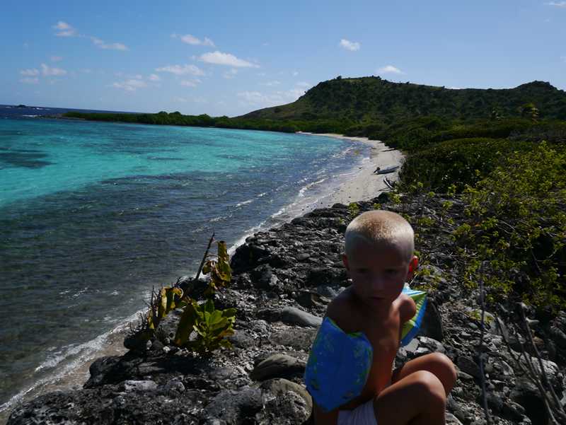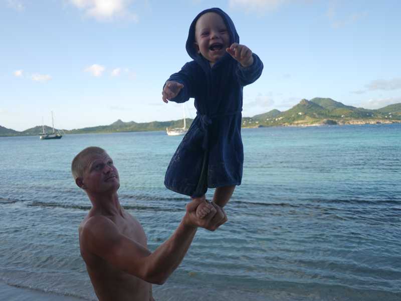 Dette er jo på en måte STEDET i Grenadinene, og det er fint her, men kanskje ikke det mest barnevennlige stedet ettersom det er mye svell. Men det er helt sikkert paradis i stille vær og uten så hissig mye turister. Vi tenker at det kanskje er litt oppskrytt… Det har nok noe å gjøre med at vi kommer hit etter Saltwhistle Bay, som vi forelsket oss litt i… Men det er jo utrolig fasinerende, vi ligger innenfor revet og ser det bryter der ute…!