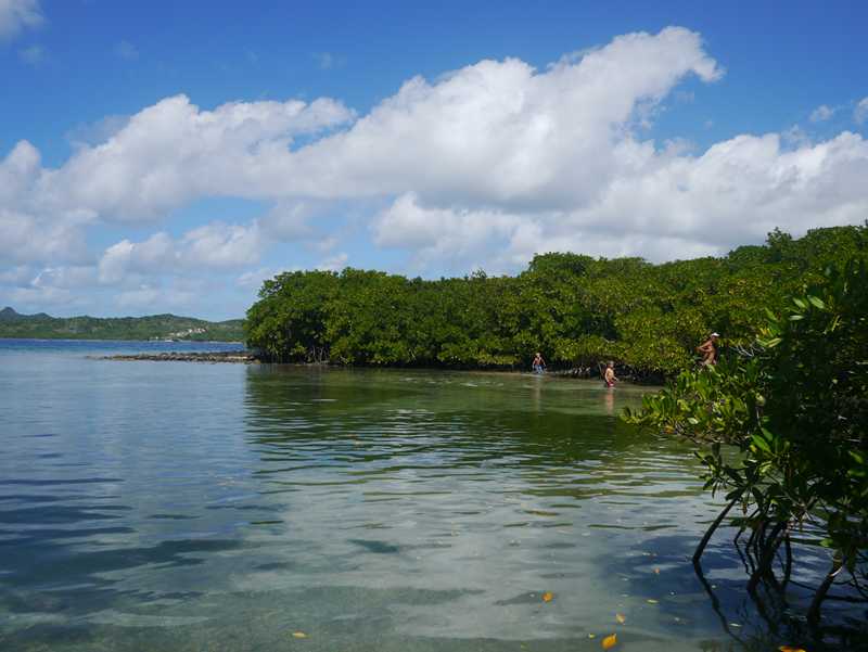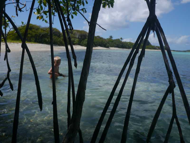 Endelig har vi funnet en egen øy! Utrolig deilig liten bukt og en øy med mangroveskog og hvit sandstrand. Snorkling og strandglede og oppdagelsesferd bortover stranden, der vi finner en liten borg (=steinhus)!