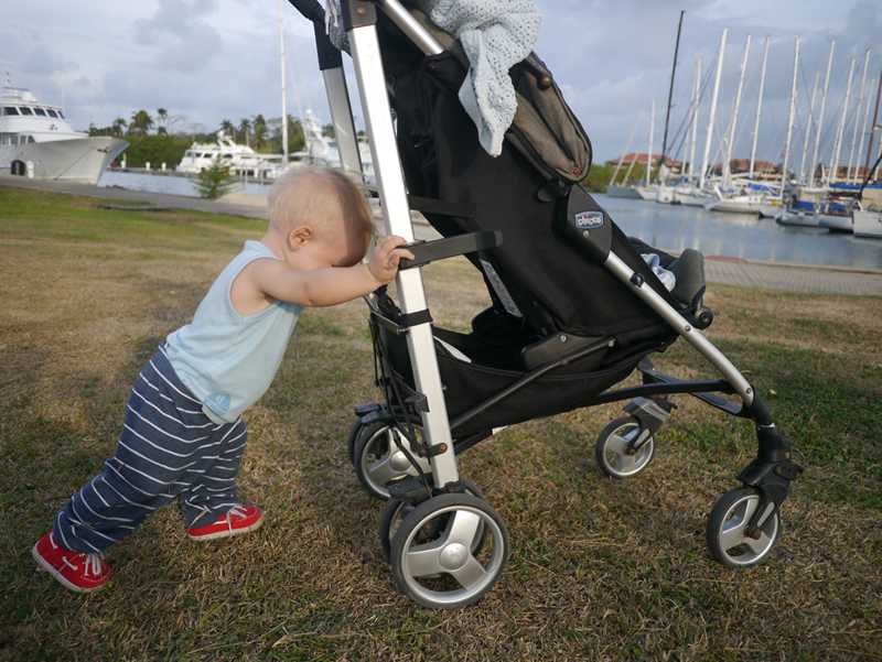 Vi mener at Mikkel kan gå nå, ettersom han tar seks til åtte skritt i slengen – og ler ( vi ler vi også)! Yess!