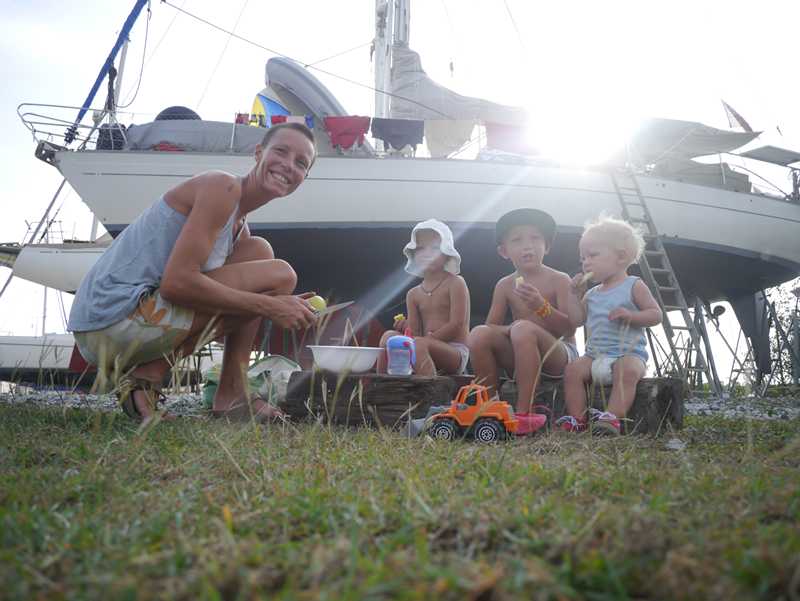 Endelig er Felice tilbake på sjøen etter en liten uke på land. Vi har bodd ombord (hadde ikke råd til noe annet) og blitt flinke til å balansere opp og ned stige med kids, baderinger og alt annet stæsj. Og Felice har fått nødvendig stell (selv om undervannskroget så veldig bra ut etter 11 måneder i sjøen!)