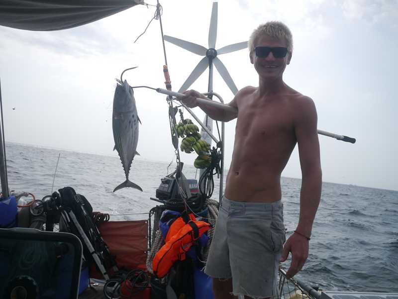 Vi har startet på ferden ut i det store blå! Første seilas i Stillehavet var en deilig dagsetappe til øygruppen Las Perlas, seks timers behagelig bidevind på flatt vann. Utrolig nok sov alle tre kidsa i halvannen time SAMTIDIG! Det hele gikk faktisk så smooth at vi fant på å slenge ut fiskesnøret…