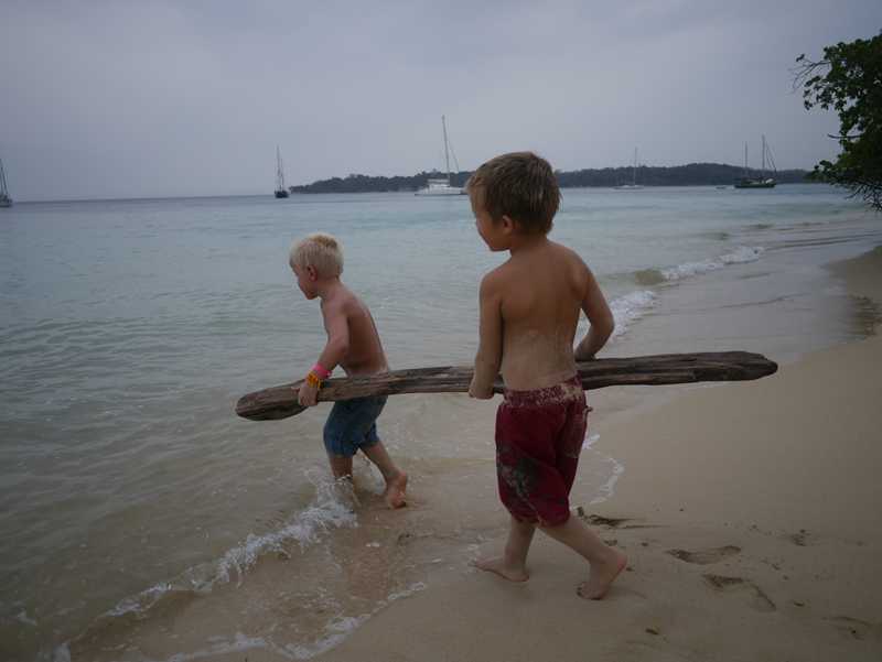 Vi har lagt oss mellom de to øyene Isla Chapera og Mogo Mogo. Her er det endelig rent vann og igjen er det morgenbad på alle mann, med påfølgende kaffe for noen heldige av oss. Det er en del som skal fikses før vi seiler ut på havet, så noe jobbing blir det på en av oss mens den andre løper med kidsa på stranden. Det har til og med blitt bål på stranden begge kveldene vi har vært her, noe som Lina, Jaron, (Supermolli-kids), Birk og Billie digger!