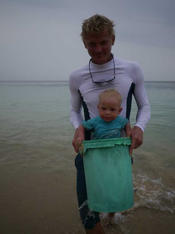 Øyene her er øde og ubebodde og det er et utrolig dyreliv. Vi har sett ørn rett over hodene våre på stranden, bare 15 meter fra oss! Og jo så en stor rokke ved stranden i går. Midt i kanalen mellom de to øyene er det et rev som er synlig ved lavvann (det er 4-5 meters tidevannsforskjell her), og de som har snorklet på det sier det er helt rått (det er de uten barn, eller de som har barn som er så gamle at det går an å gjøre noe annet enn å passe på dem…!).