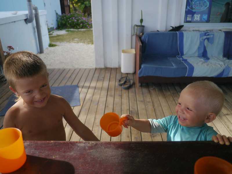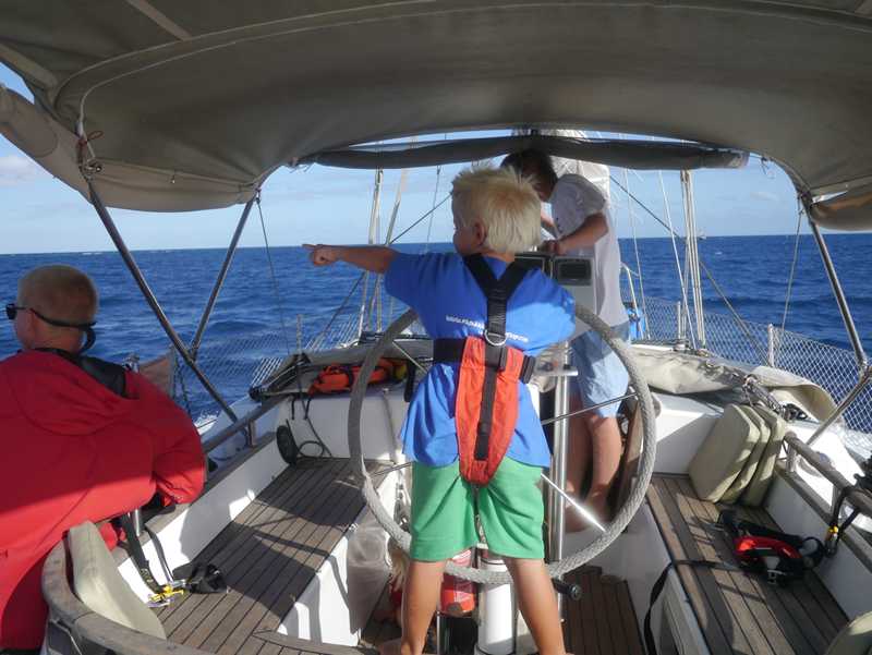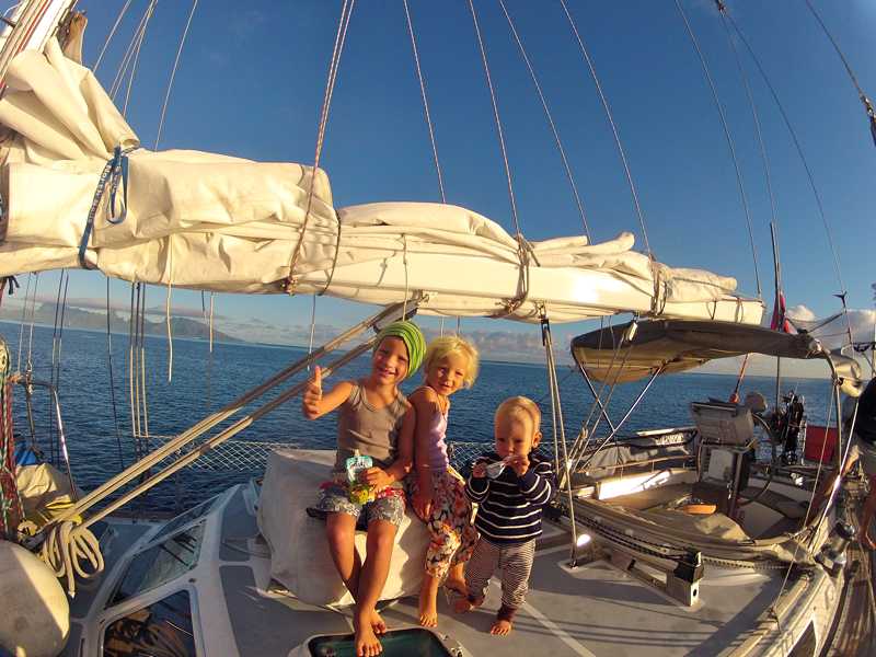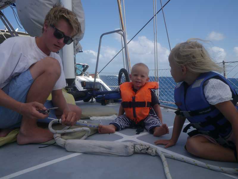 Det er noe med disse litt kortere turene… Etter Stillehavskryssingen er det akkurat som vi forventer at alle turer etter det skal bli en «kaffifart» (eller søndagstur, på norsk). Men vi, og mange andre vi har snakket med, blir overrasket over hvor strevsomme disse småturene kan være. Jeg tenker jo at det har sin naturlige forklaring i at vi ikke er så godt forberedt (mentalt) som før passasjen fra Galapagos til Marquesas (på 3000 nautiske mil). Så for veldig mange kan de kortere strekkene på to til fire dager være skikkelig kjipe. Denne turen gikk fint for oss, men den fra Marquesas til Tuamotus hadd et snev av denne lite-energi-om-bord-tingen. Det er ikke det at været eller sjøen er så ille, jeg tror bare det er at vi ikke er godt nok forberedt i hodet… Akkurat som vi ikke er så flinke til å ta svell, squalls, mas, sutring, matlaging, osv med et smil, det er bare mer strevsomt… Så moralen er vel å ikke undervurdere de korte turene! Denne turen har dessverre Birk vært litt sjøsyk igjen og det er lenge siden. Han kaster opp (to ganger i går) og etterpå er han heldigvis i superhumør (og skrubbsulten!) og bryr seg ikke. Vi mistenker at kanskje også Mikkel har begynt å føle litt på sjøen, noe vi ikke har merket tidligere. Han virker litt misfornøyd uten at vi helt klarer å skjønne hva det er, så da tenker vi kanskje sjøsyke. Men med avledning, pupp og kos er han blid som alltid, så SÅ ille er det ikke heldigvis. Billie er helt fin, men sånt er jo fort smittsomt (i hvert fall hvis det er oppmerksomhet involvert!), så hun prøver seg innimellom med: «jeg føler meg litt uggen…», så hun får kos selv uten gulping! Kjipt med sjøsyke, men det går jo over etter rundt en dag, så løsningen blir å seile lengre etapper i stedet for mange korte (der det lar seg gjøre i forhold til landkjenning, selvfølgelig).