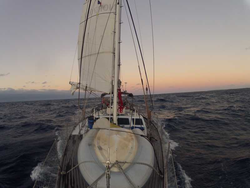 Passasjen fra Rangiroa har gått greit, men det har vært skikkelig rullete med vinden og svell rett fra siden (turen fra nordlige Tuamotus og til Tahiti betyr en mer sørlig kurs enn at retningen på passatvinden er gunstig). Vi har måttet bremse en del ettersom vi ville komme frem i dagslys, og det er jo aldri gøy å seile saktere enn man kan! Turen ut gjennom Tiputa passet i Rangiroa gikk problemfritt. Det skrives mye om å gå gjennom passene i atollene, enten man skal ut eller inn, og at man må time gjennomgangen riktig i forhold til strøm og tidevann. Dette er jo noe som endrer seg hele tiden, pluss at det er store lokale variasjoner når det gjelder tidevannet her, så det gjelder å snakke med kjentfolk (vi pratet med dykkerklubben, de har peiling), og ikke stole blindt på