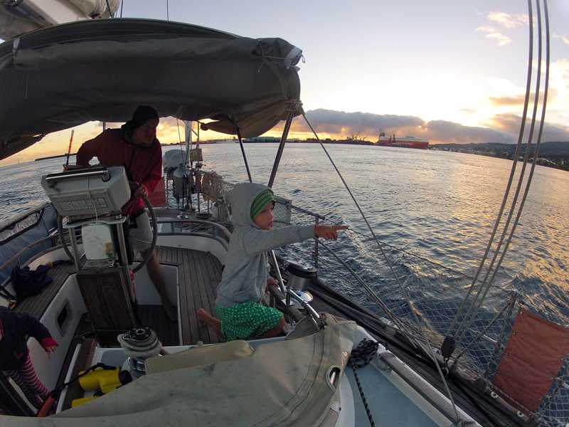 I det vi seiler inn mot Tahiti i grålysningen, kan vi kjenne igjen Heyerdahls beskrivelser av øya som skyter opp mot himmelen fra havet. Så blir det lyst og den store havna våkner til liv. Stor begeistring spesielt hos Mikki når han følger travel båttrafikk, Billie og Birk gliser med kakao-bart og Gubrand nyter utsikten av by og fjell til morgenkaffe på fordekk. Vi har følge av et Wilhelmsen-skip inn passet, og føler oss litt hjemme ved siden av det store rødmalte Tønsberg-registrerte lasteskipet.