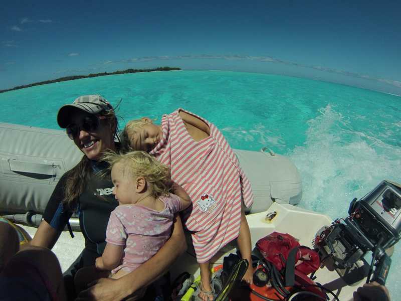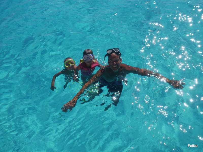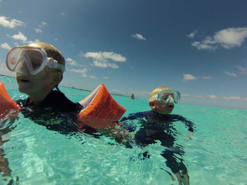Billie, Birk og mama har vært på snorkletur i en korallhage med resten av gjengen, masse fine fisk og koraller, men litt kaldt i lengden etter Billies smak.
