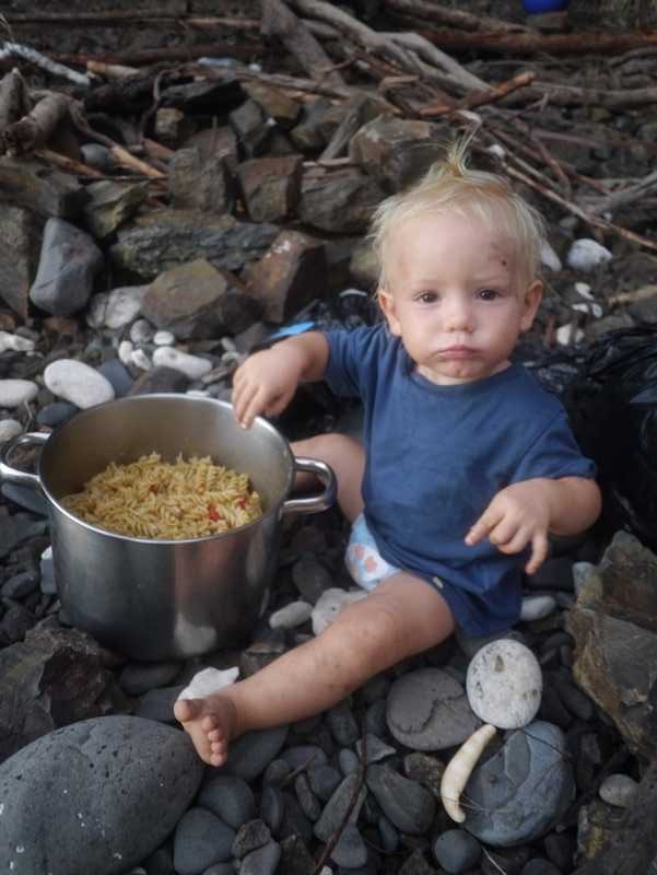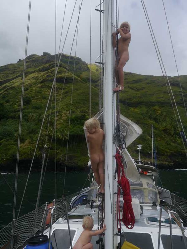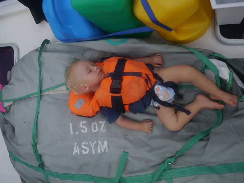Ellers har vi hatt flere fikse-dager: Vi har vasket skroget etter kryssingen (det så skikkelig bad ut med grønske og slim langt oppover skroget). Vi har bygget skillevegg i overkøya på rommet til B+B (så Billie får fotenden til sengen til Birk), ettersom det er nødvendig med omrokkeringer om bord når Gudband kommer (planen er å flytte Mikkel inn i underkøya hos de andre). Vi har fylt vanntankene med kanner fra kraner på brygga her (vannet er godt og vi vet ikke når neste mulighet byr seg…). Også har vi startet ammekutt på dagtid. Mama slipper endelig gnaging flere ganger i timen og får fri fra sutring og kjas, Jo drar med Mikki på land og tar støyten. Men han (Mikki) tar det veldig bra, og appetitten øker jo når man fjerner et uvisst (og høyt!) antall mellommåltider!