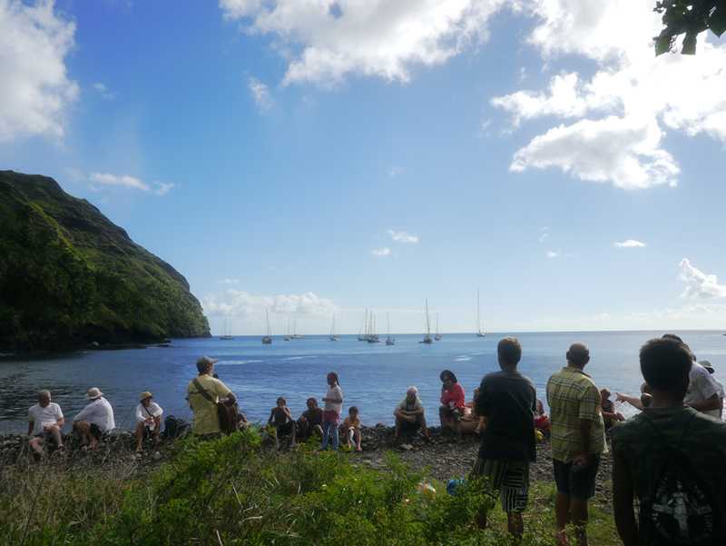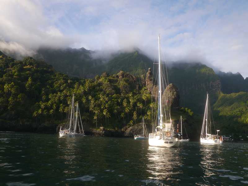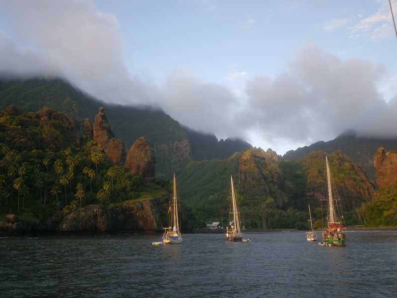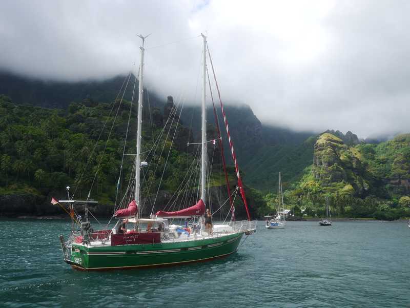 Det kommer stadig nye båter hit, en del som vi kjenner fra før. For de fleste er dette første ankomstbukt etter Stillehavskryssingen, noe som er naturlig ettersom det er den sørligste øya, og å skulle gå hit senere vil bety motvindseilas. Det eneste kritiske, som har vist seg å ikke være noe problem, er at det ikke er mulig å gjøre offisiell innsjekk her. Men det viser seg at det gjøres uproblematisk på Hiva Oa, når man kommer dit etterhvert. Heldig for oss så er de franske immigrasjonsmyndighetene vesentlig mer slappe enn sine latinamerikanske kolleger!