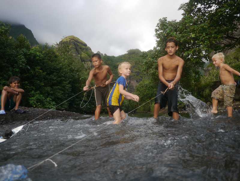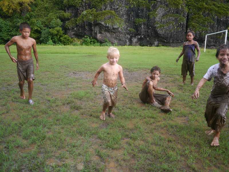 De lokale barna er nysgjerrige og imøtekommende, og Birk viker ikke av veien for litt kontakt med jevngamle. Det er fotball, fekting i skogen, bading og surfing i elvemunningen, gjørmebad etter regnskurer og alt annet de driver med. Veldig kult for Birk, han elsker det! Billie og Birk har også vært på skolen og gitt dem fargeblyanter og skrivesaker, fint å kunne gi bort ting det er vanskelig for dem å få tak i.