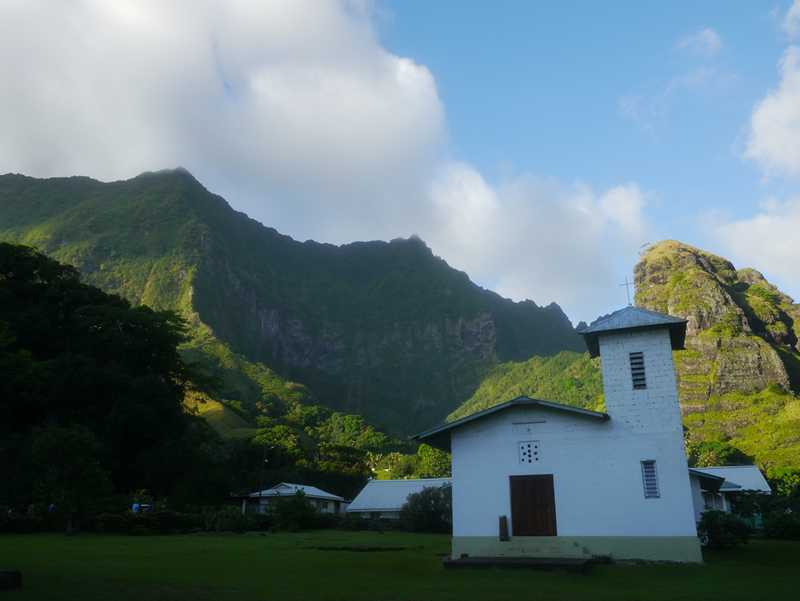 Vi føler vi har fått et innblikk i hvordan menneskene her lever og har sett den utrolige naturen, med de spisse fjellene på rundt 1 000 meter som skyter opp fra Stillehavet og mot himmelen. En tidlig morgen dro jeg inn til gudstjeneste med B+B. Kirken ligger ganske langt ned mot havet og vi kunne høre den nydelige polynesiske sangen blande seg med suset fra kokospalmene på utsiden, mens vi kjente tropisk vind som blåste gjennom de glassløse vinduene i den lille hvite kirken.