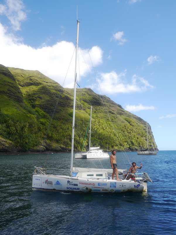 Siste båt inn her kom i dag og er en liten jolle av en racingseilbåt (6,5 meter lang mini transat) med to franske kompiser om bord. Florian og Alex gjorde Stillehavskryssingen fra Galapagos på 21 dager. Hyggelige kiser, og de var happy for å bevege seg på land! De skal resten av veien rundt jorda og der snakker vi trange kår… «Are someone else telling you that you are crazy?” spurte Jane fra New Zealand dem på brygga her. De smilte og trakk på skuldrene som bare franskmenn kan.