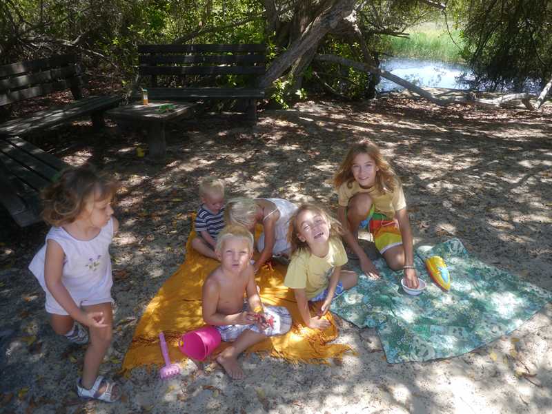 Vi har vært og sett på en av de eldste skilpaddene på øya, og spist lunsj på en eco-restaurant under et enormt mangotre. Mangotreet kalles også sleepytree, fikk vi vite av en australier, for det gir perfekt tett skygge til de som ligger i hengekøyer under det!