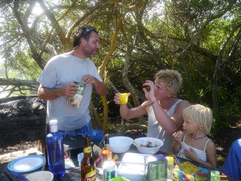 Kjøleskapet og båten generelt er fylt til randen med frisk frukt, grønnsaker og kjøtt, som vi fråtser i mens vi fortsatt får tak i det. For tiden er det lov å spise kun pålegg og det er ingenting å si på kjøttinntaket (det er råbillilg med kjøtt, så her serveres det indrefilet til middag over en lav sko!). På kryssingen til South Pacific blir det å ta med det vi tror vi klarer å spise av frukt og grønt før det blir dårlig, etter det blir det hermetiserte vitaminer… Men appelsiner, bananer, løk, poteter, og noe annet holder seg lenge, så helt galt er det ikke – men noe ganske annet enn det vi er vant til! (Maria har nemlig litt hangup på dette med frisk kontra boksemat, captn anm). Når vi kommer til Fransk Polynesia får vi tak i det meste, men det er rådyrt (har hørt trippel pris av her, for eksempel koster en boks med øl 3,50 US$ mot under 1 US$ her!)). Frukt og grønnsaker får vi tak i ved god gammeldags byttehandel. Det er nemlig en del ting som det er stor etterspørsel på fra de lokale, som de ikke får tak i der, som kan vært smart av oss å ha med nettopp for å få byttet til oss grønnsaker og frukt. Som vi har hørt er det for eksempel fiskekroker, ammunisjon til jakt, skrivesaker, tykke tau til å binde hester og sigaretter (pluss alkohol, men det er mye alkoholproblemer der, så bad moral å bruke det som byttevarer…).