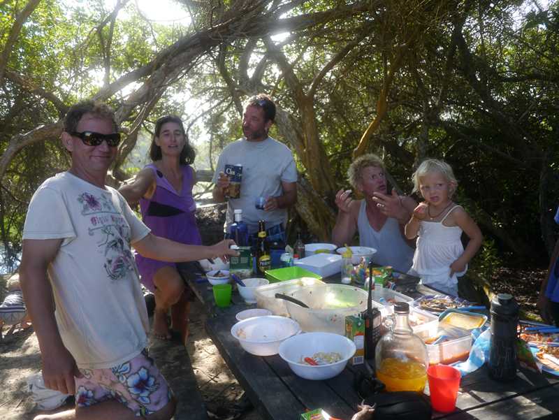 Strendene er flotte og vi har hatt grillings og strandtur med tre andre båter bortest på stranden – grillet wahoo, salater, snaks og franskblandet rum med pasjonsfrukt – nydelig dag med frittløpende kids og hjem i mørket (Gadjo Dilo also finally managed to get out of the harbour with their dinghy, as they took up their small anchor after a while trying with the anchor out… Hi hi!).