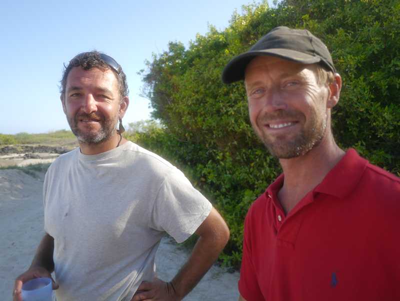 Vi har seilt sammen med våre venner Supermolli (fra Hafenklang i Hamburg) nå siden Kapp Verde. Vi dro samtidig ut fra Las Perlas for snart tre uker siden. De ble redd for å gå tomme for diesel på vei hit og bestemte seg for å gå inn til fastlands Ecquador etter tre dager (en omvei på ca 300 nautiske mil.) Det gikk greit, men ca 200 mil ut fra kysten på andre forsøket hit stoppet motoren. Det var dieselinjektorpumpa som var ødelagt. De måtte igjen snu og gå tilbake til Esmeralda i Ecquador (nye 400 ekstra mil.) Der brukte de mye tid og ganske mye penger på å få denne reparert. De dro ut igjen på sitt tredje forsøk på å nå Galapagos, men motoren stoppet på nytt 200 mil fra Galapagos, helvete! Heldigvis kom vinden og de kom seg trygt i havn på naboøya her Santa Cruz. Nå er det uvisst hvor lang tid det tar å få sendt en ny pumpe fra USA og for oss er det ekstra kjipt siden vi må dra nå (våre 20 lovlige dager er brukt opp) og ikke får sett dem igjen før tidligst Marquesas. Helt krise var det jo aldri, de har tross alt seil på båten sin, men med en ketchrigget tung stålskøyte i motvind, motstrøm og stampesjø er det godt å kunne dytte på litt med en motor, hvis ikke tar turen hit meget lang tid. Good luck superpeople – see you on the other side!