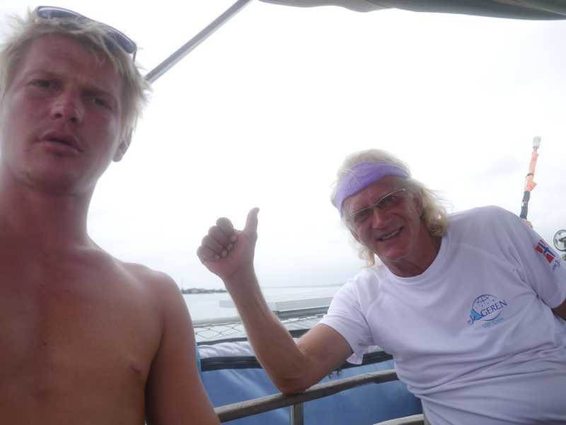 I morgen kommer Oda-båten ut av kanalen, det blir hyggelig. Vi har allerede stiftet bekjentskap til deres påmønstrende crew som venter på hotell her. Alf er lege og var grei å sette gulfeber-vaksine på Mikkel, takk!