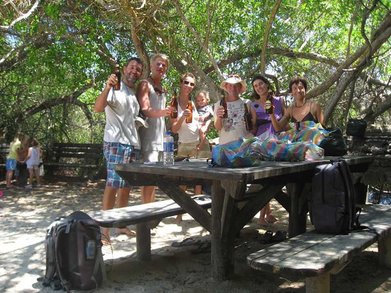 Prosessen med innsjekking er ganske omstendelig og langtekkelig… Og det kan fort bli en liten prøvelse når man må vente i en dag og to etter over en uke på sjøen før man får lov til å gå i land… For oss gikk det heldigvis ganske raskt, og vi slapp unna med en halv dags venting på båten. Det var egentlig greit, for da fikk vi ryddet og vasket skikkelig etter kryssingen, noe som ville vært totalt nedprioritert hadde vi kunnet gå i land! Det vi ventet på var en armada med kontrollados fra alle tenkelige instanser som skulle gå gjennom og sjekke båten for gammel frukt og grønt, skitt under sko og støvler, uønskede planter, mat utgått på dato, rotter og andre kryp. I tillegg kom en representant fra nasjonalparken som holdt et lite foredrag om hva som er lov og ikke lov her (til Birk og Billies store skuffelse er det for eksempel ikke lov å kjøre bånn gass med jolla…). Etter sjekk og utfylling av diverse skjemaer var de 6 representantene som kom ombord fornøyde etter å ha sprayet noe kjemisk under dørken på do (som skulle ta kverken på eventuelle ting vi eventuelt hadde tatt med fra utlandet og hit, som de ikke ønsker ettersom introduserte dyrearter og planter forringer det originale livet her), så vi var offisielt sjekket inn og kunne lovlig gå i land!