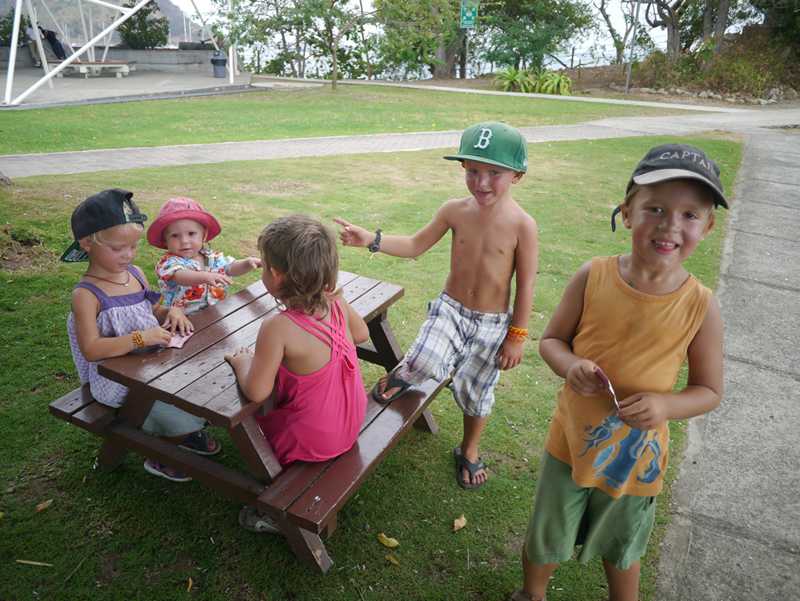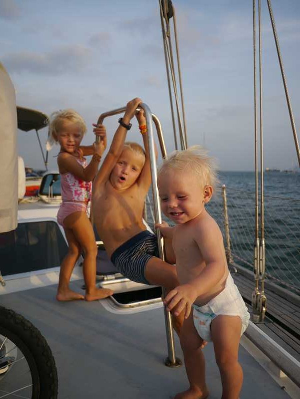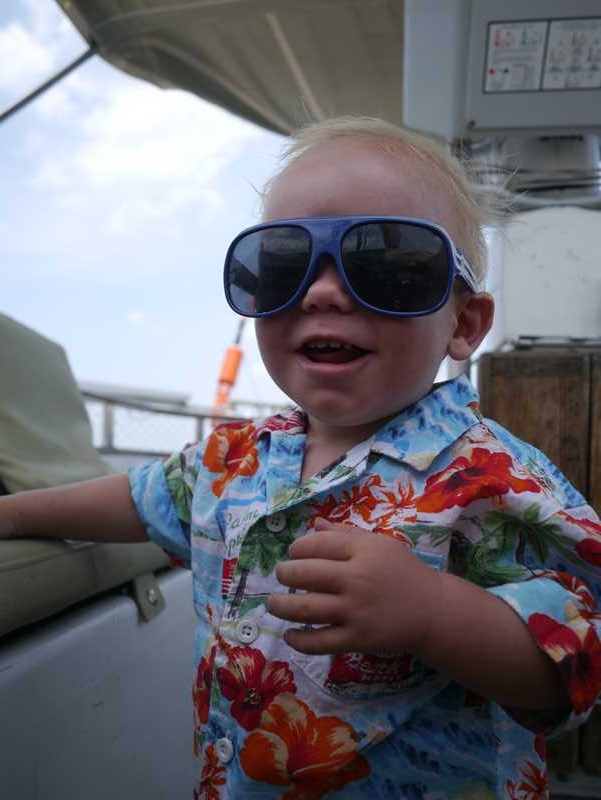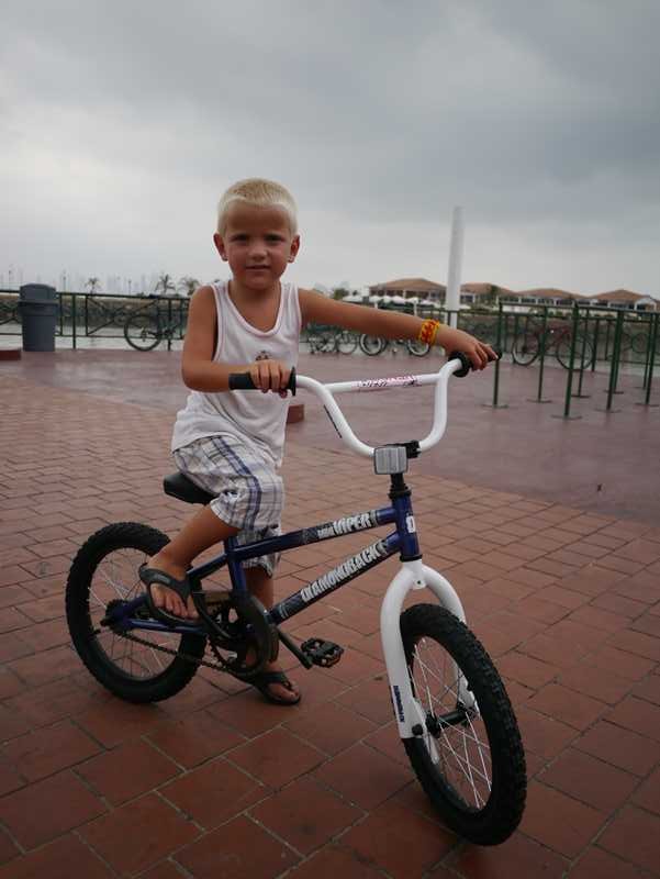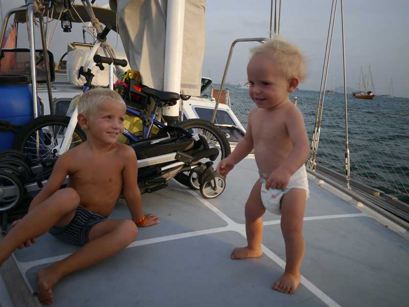 Vi har vært på et monster-mall som vi egentlig ikke vet hvor stort er, og fikk tak i det meste vi trenger. Birk fikk 5-årsgave – ny sykkel, og er veldig happy! Mikkel var fornøyd med smoothe gulv der, og gikk med utstø skritt med verdens største glis! Han har flyttet ut inn i forpiggen, med ny reiseseng, og sover lenger enn storesøskene sine – yes, siste ungen ut av soverommet vårt! Mikkel er rett og slett blitt en liten gutt! Han stabber rundt på dekk (men fortsatt er det kjappest å krabbe) med redningsvest (ettersom han har begynt å klatre oppover rekkenettet…) Han har fått ny skilpaddestol som han elsker, og deltar ivrig i alle måltider og er ikke fornøyd før han får AKKURAT det samme som de andre småmatrosene. Han svarer på spørsmål og nikker, men er best til å riste på hodet og kommer med masse rare og morsomme lyder. Noen ord tror vi at vi gjenkjenner, og han sier «Bi» til Billie og Birk!