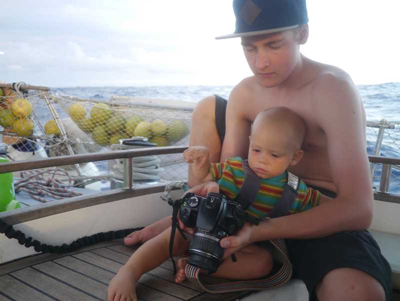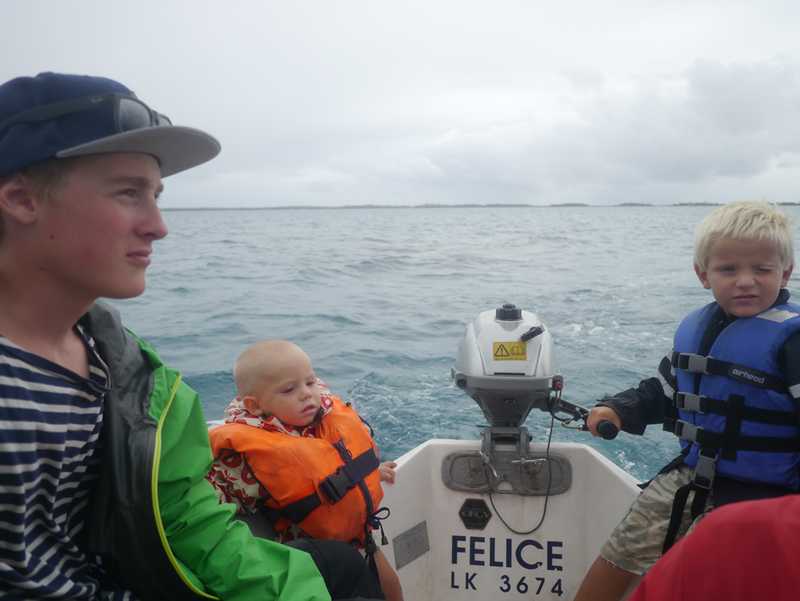Om bord på «Marina Lady Emily» kunne det dansktalende personalet nemlig tilby det meste: dykkekompressor, varmtvannsdusj, restaurant og bar med alle rettigheter, barne-kino og pass, øl og prat på far, laundry, meteorologisk tjeneste og sosial avkobling. Det eneste negative var fare for at kakerlakker hoppet om bord til Felice og trøtte foreldre på morgenen (vi tar ikke selvkritikk for sene kvelder…) – det har vært fine dager, hyggelige og interessante samtaler og det er godt å dele opplevelser og hverdagsproblemer med noen i samme situasjon!