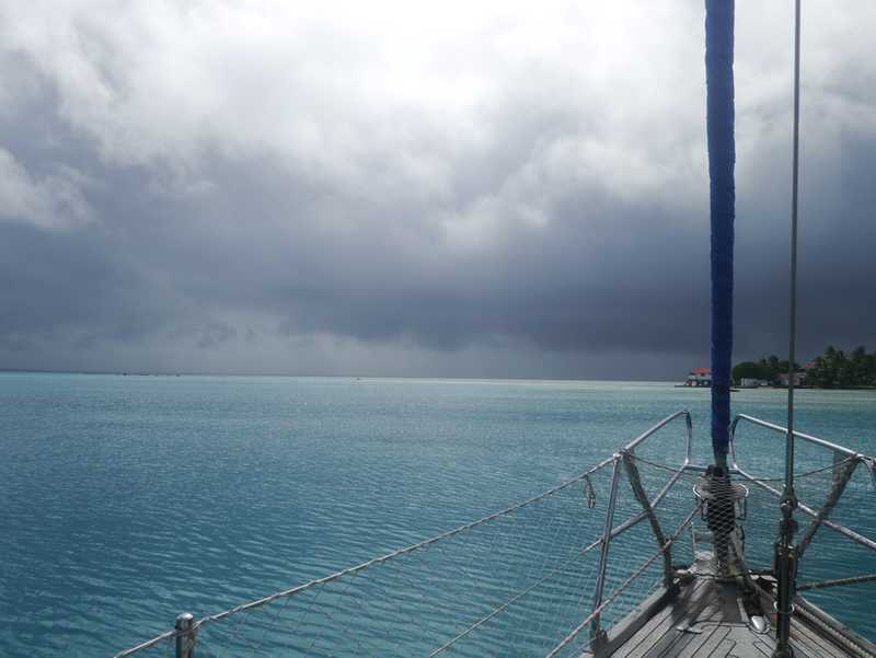 Siste kvelden på vei hit fra Marquesas dreide vinden fra sørøst og normal passatvind og til 20 knops motvind. Vi tok alle seil ned, bortsett fra storseil med to rev i midtstilling for å stabilisere båten i den tre meter høye svellen. I løpet av natten stampet vi oss gjennom utallige squaller som kom med pistol-regn (uttrykk oppfunnet av Birk og Billie) og 45 knops vind. Nok en gang fikk vi ufrivillig testet hvor vanntette lukene faktisk er, og konklusjonen er fortsatt at de tar inn vann både fra hav og himmel bare det kommer mye nok…
