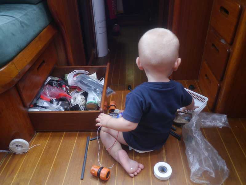 Ellers har det vært noen heftige jobbedager, blant annet er løpende rigg sjekket og snudd, skroget er vasket for gule flekker og vi har hatt full gjennomgang og opptelling i matlageret, samt rengjøring der det er lagret. Vi innser at det er enkelte ting på boks som vi kanskje var litt vel ivrige på under innkjøpsrundene våre, så det er flere på øya her som har fått en god porsjon av Felice-proviant. Det er fint å gi det bort her midt uti havet, hvor tilgangen på mat ikke er den beste. Som takk fra en av de lokale, ble Gudbrand litt senere tilbudt en slurk rødsprit, men stod pent over…