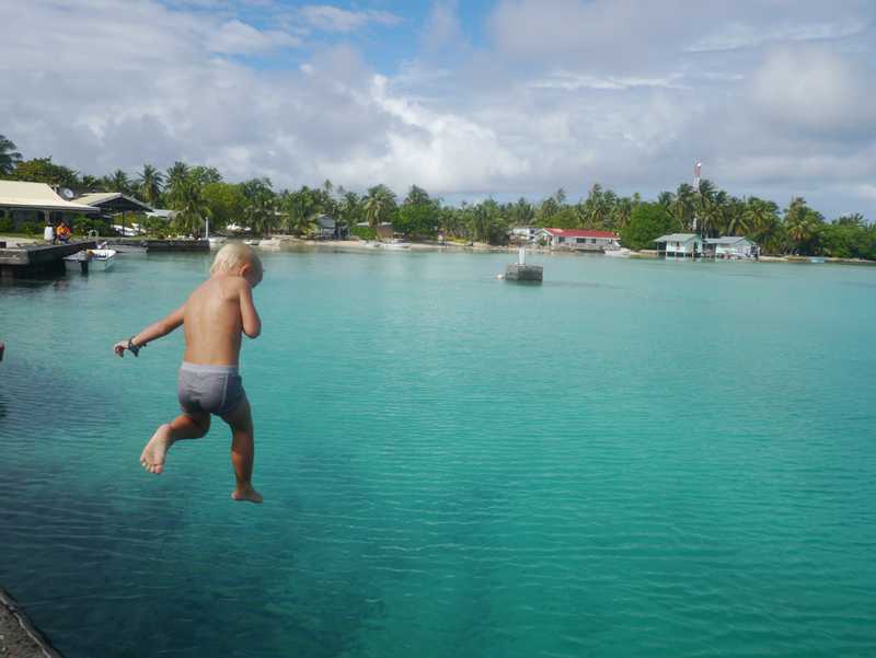 De siste to nettene i Ahe ble vi tatt godt imot i “Marina Lady Emily”, i det vi la oss longside den danske 90-fots båten i påvente av uvær og økende vind. Den danske storfamilien la seg inn ved kaia der supply-båten legger til to ganger i måneden for å levere mat, bygningsartikler og alt annet den lille atollen trenger. Vi hadde viklet ankerkjettingen vår godt inn i en kjetting som perlefarmene festes i, og måtte uansett ankre om etter at Jo hadde vært nede med dykkerutstyr for å vikle oss ut av det. Ettersom det var meldt opp mot 30 knops vind kommende natt, ville vi ikke teste holdet på ny ankring på det uværet og det var fristende å takke ja til marina med høyt standard…