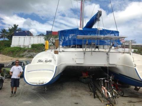 Joselin (pappa-Philemon) ble gira på Blue Marble (som var til salgs hovedsakelig som delebåt fra forsikringsselskapet), og han viste seg å være enda mer impuls-prosjekt-gæren enn oss, så han fikk med seg kona og kjøpte hele vraket for å sette båten i stand igjen (etter full gjennomgang av båten og innspill fra båtbygger og evig optimist Jo). Det var en nervepirende budrunde på yacht cluben med en annen lokal budgiver, men Steph og Joselin vant. Så nå sitter de på Niue med TO båter og starten på et eventyr i katamaran (pluss en stor renoveringsjobb selvfølgelig). Veldig kult at Blue Marble får seile igjen, og det med så fine folk som Philemon-gjengen!