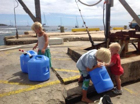 Det er mye båtkjentfolk her utenom nordmennene. Philemon (de slo oss med en time på turen fra Mopelia!), Duende, Zoomax, Skye, Nomad, Plume, også har vi tatt igjen svenskene på Salsa og Miss My igjen, så Birk er overlykkelig for å kunne prate svensk med gutta sine igjen. Vi hadde et lite sightseeing-maraton rundt på øya her med leiebil sammen med franskmennene på Philemon, og klatret i fjellsprekker og svømte i grotter, utrolig flott men vi var egentlig ganske glade da dagen med kids-mania i baksetet var over…