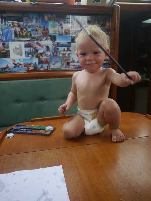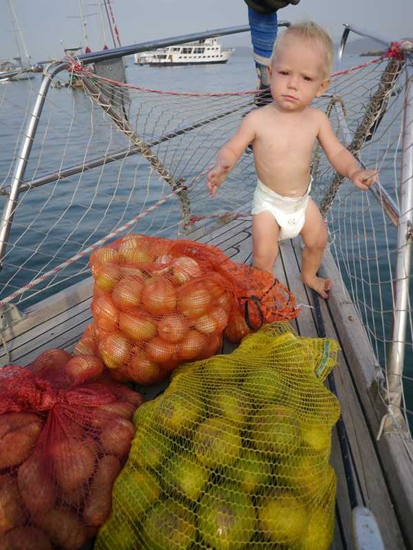 Vi hadde en skikkelig dårlig avslutning ved brygga på marinaen her i går da vi skulle fylle diesel og vann, heldigvis var det topp underholdning for alle taxisjåførene som stod og hang, så noen fikk jo noe ut av det… Det begynte med at det av en eller annen grunn bare sprutet diesel opp fra hullet i dekk da vi skulle fylle, så Jo fikk seg en hissig diesel-dusj, og jeg ble hissig og kara på brygga ble om mulig enda mindre hjelpsomme… Birk og Billie var propeller rundt overalt og vi rundet av besøket ved brygga her ved at B+B klarte å velte hele balja med klesvask som stod på dekk til siste skyllerunde, så mama klikka og kjeftet mens taxisjåførene stod og humra og lo (and you can’t blame them)! Nå ler vi av det selv også, men det var ikke så veldig kult å komme inn til brygga med jolla igjen noen timer senere, etter at vi lå vel ankret opp ute i bukta igjen! Det skal bli så digg å stikke herfra nå!