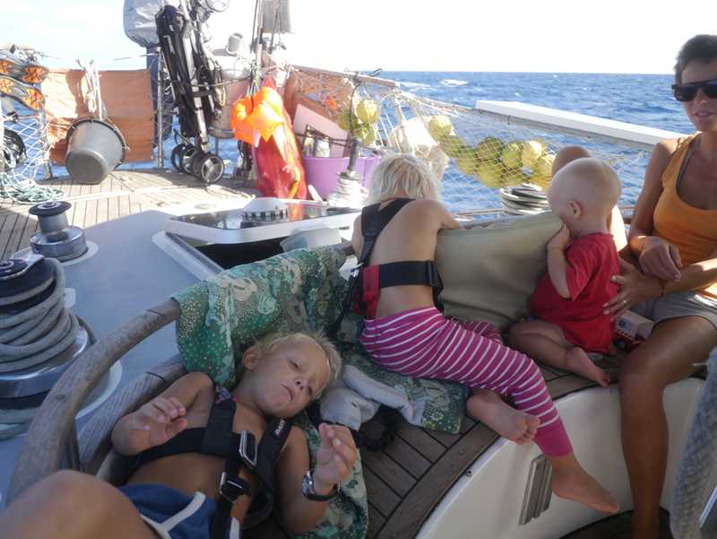 Det er veldig trivelig med Gudbrand her, han er fin og hjelpsom og har utrolig god kontakt med alle tre småmatrosene, kult og hyggelig at han vil tilbringe sommerferien sin med oss – og takk for lånet til dere der hjemme!